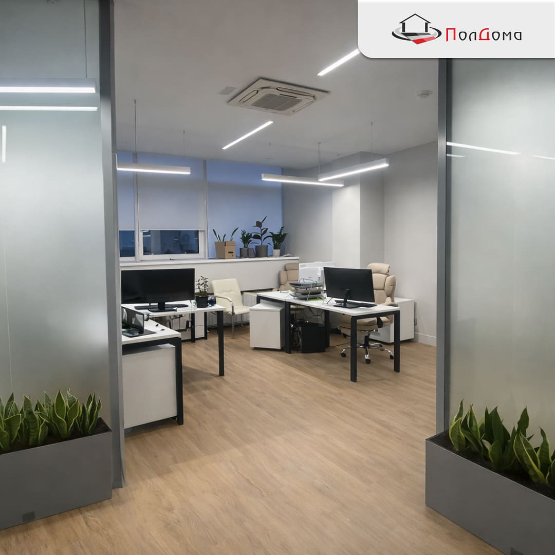 • Термостойкость — покрытие совместимо с системой «тёплый пол», которая часто используется в современных офисах;