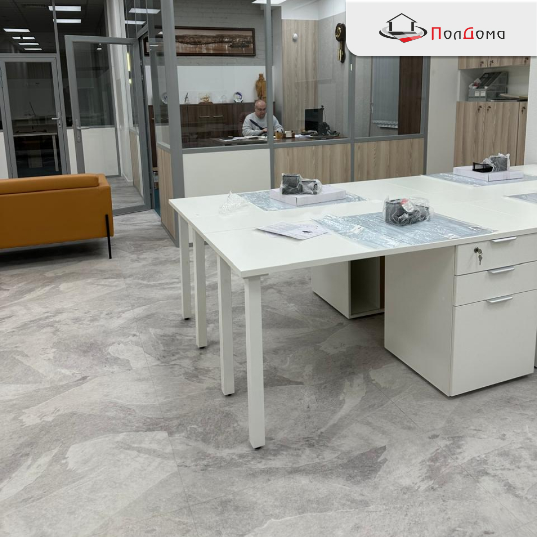 Больница получила практичное, долговечное и эстетичное покрытие, которое выдерживает ежедневный поток пациентов и персонала. Пол выглядит современно и опрятно, легко моется, а ровная геометрия укладки подчёркивает аккуратность пространства.
